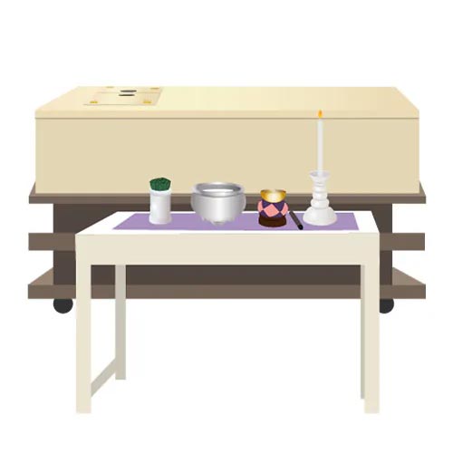 ご自宅にご安置される場合は、事前にお布団をご用意くださいませ。 ご安置後に枕飾りやお線香などの供養道具をご用意いたします。